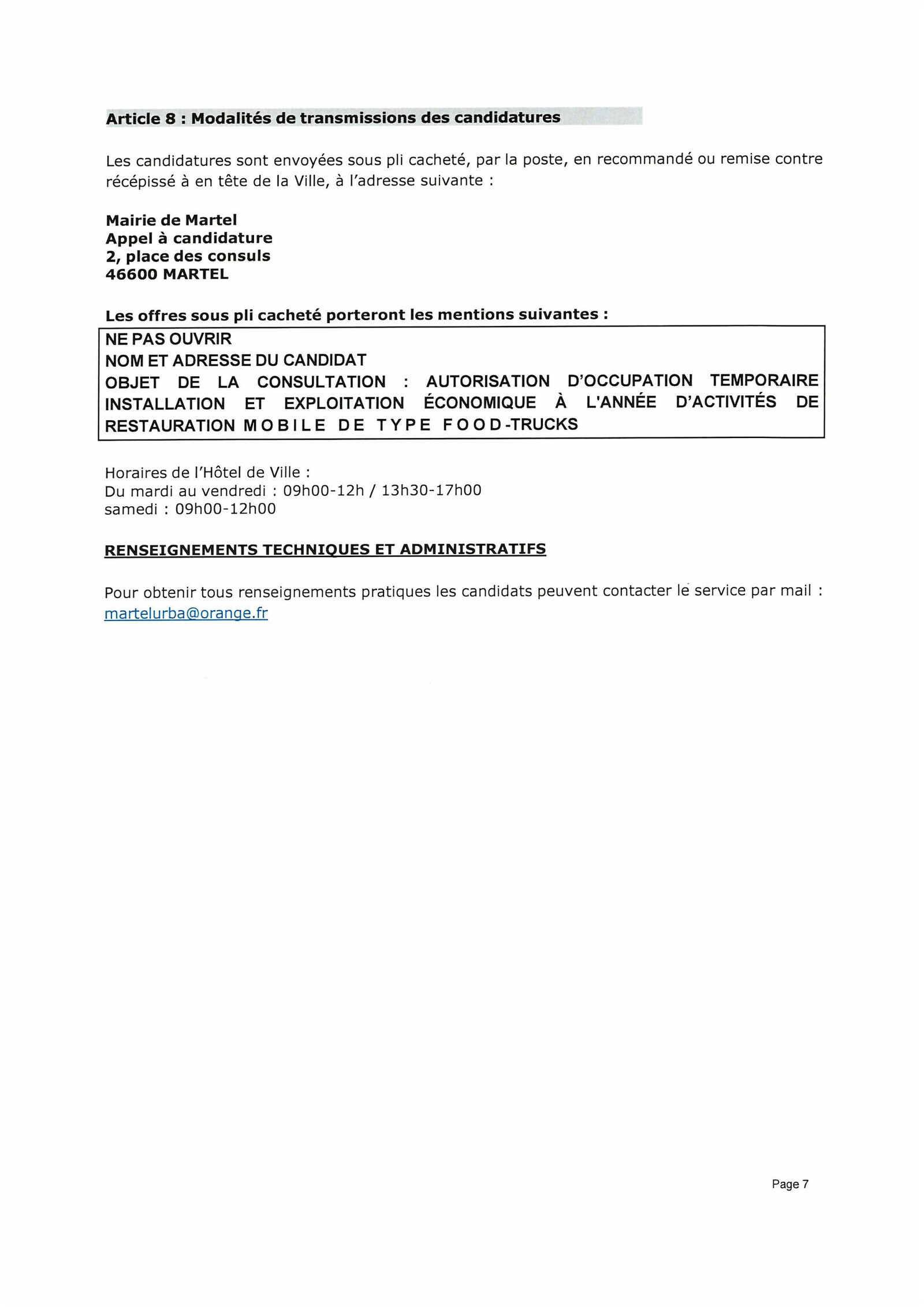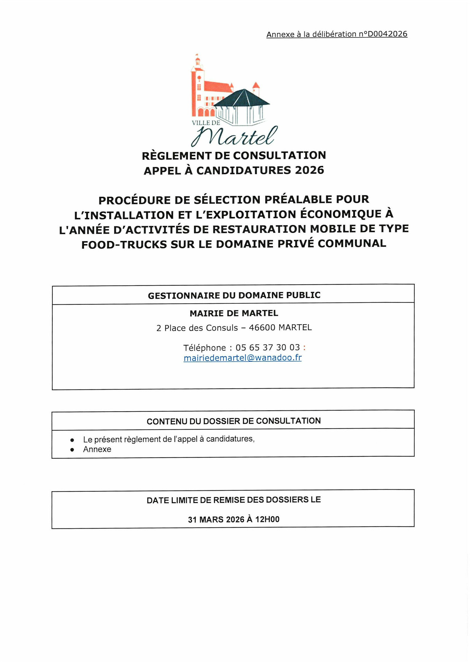 Appel à candidatures pour l'installation et l'exploitation à l'année d'activités de restauration mobile de type Food-Trucks sur le domaine privé communal