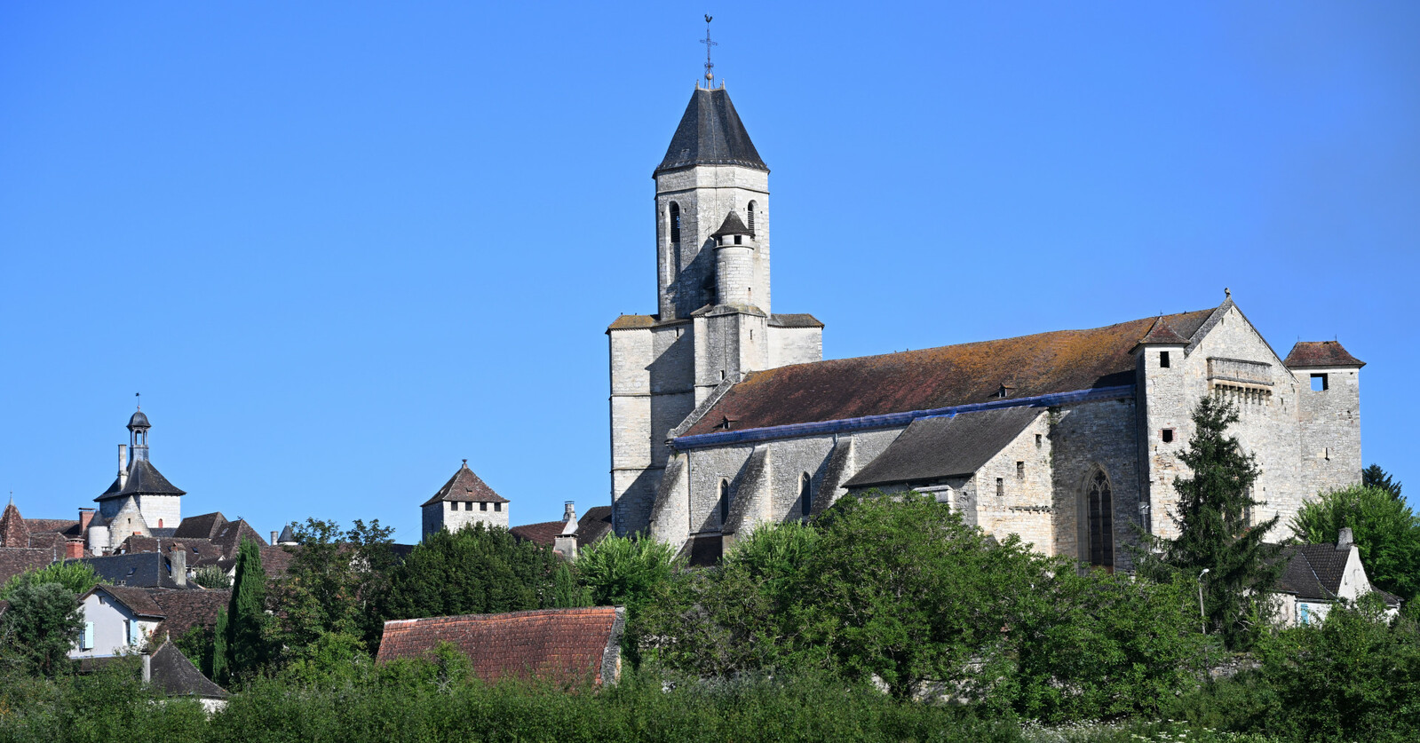 La première église Saint Maur, romane, construite à partir de la fin du XIème siècle en tant que prieuré de l’abbaye de Souillac est reconstruite, selon le style gothique méridional, et agrandie au XIVème siècle. Adossée aux remparts de la première enceinte elle est fortifiée sur sa partie Est avant la guerre de Cent ans. Son imposant clocher est terminé en 1525. Elle est l’église paroissiale de Martel depuis plus de huit siècles, fonction uniquement interrompue durant la Révolution française.
