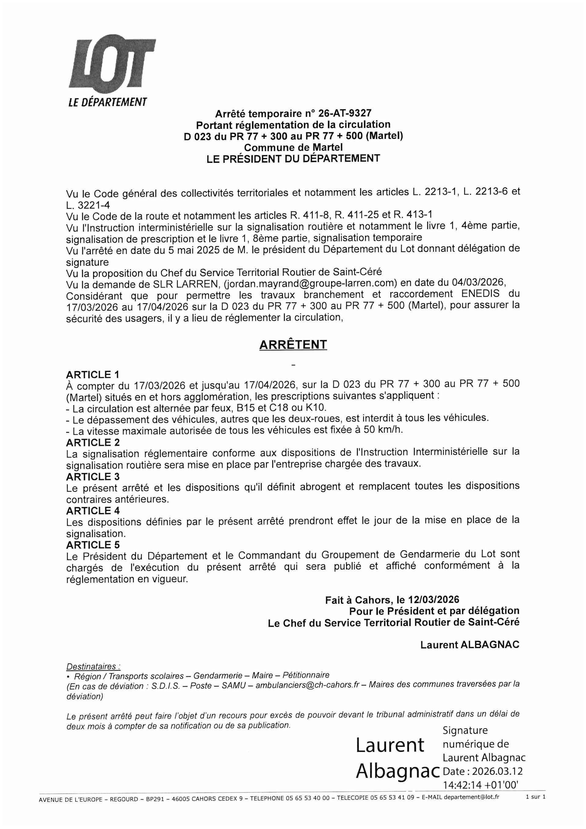 Arrêté circulation RD 23