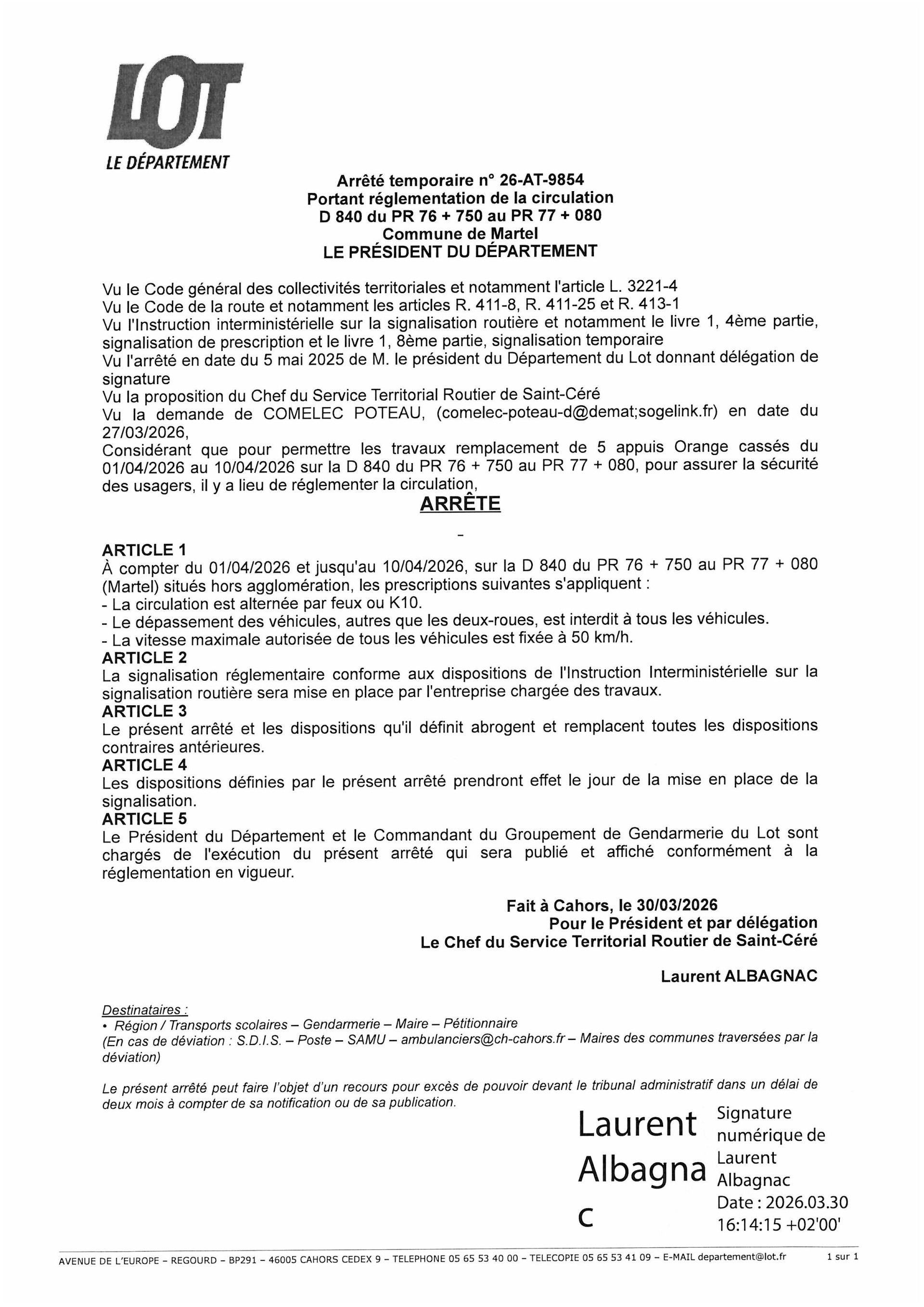 Arrêté de circulation RD 840