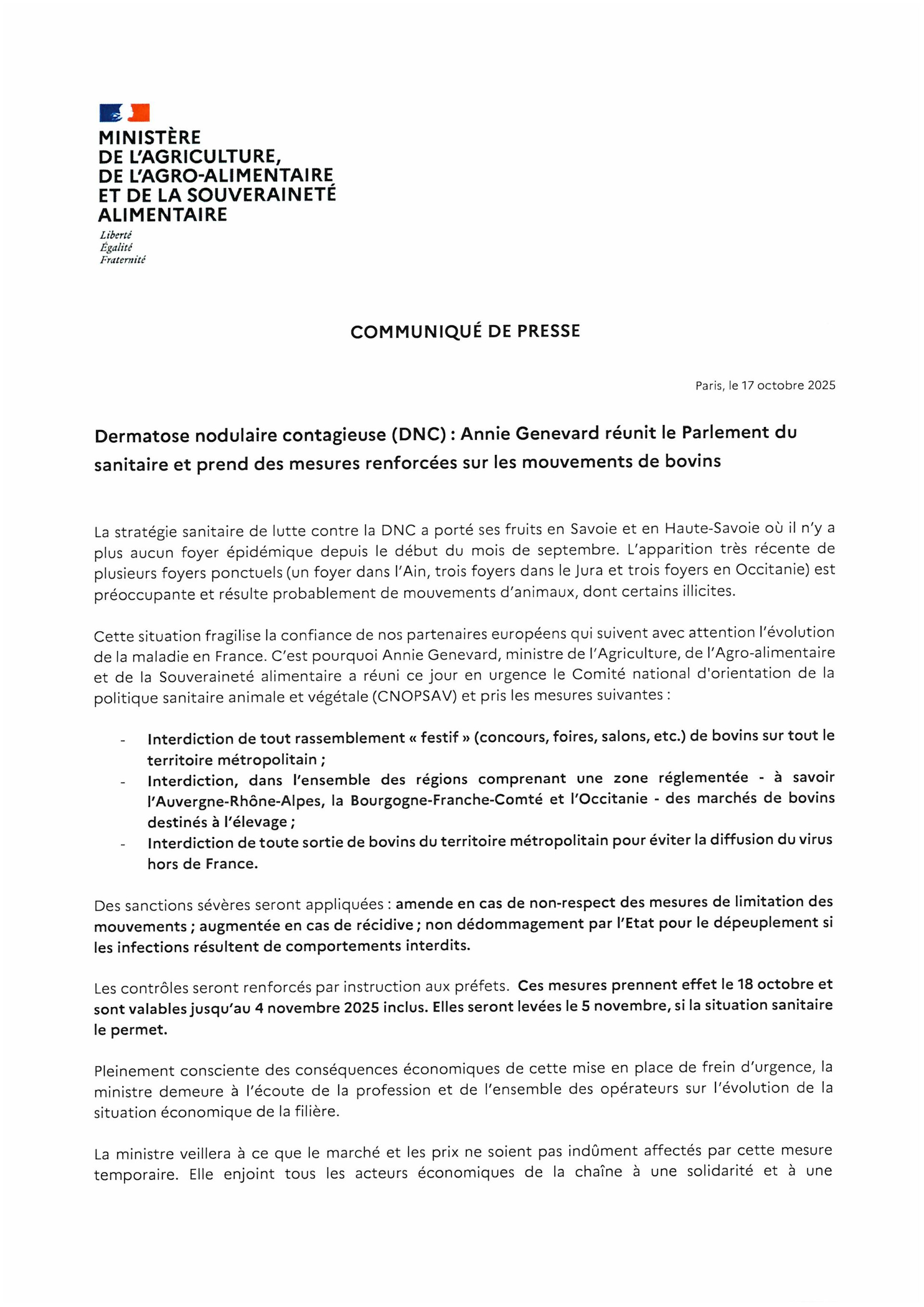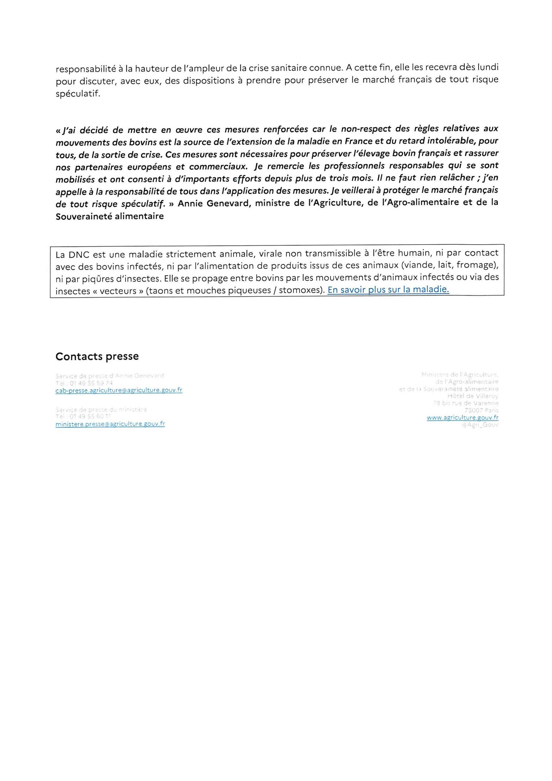Communiqué de presse Dermatose Nodulaire