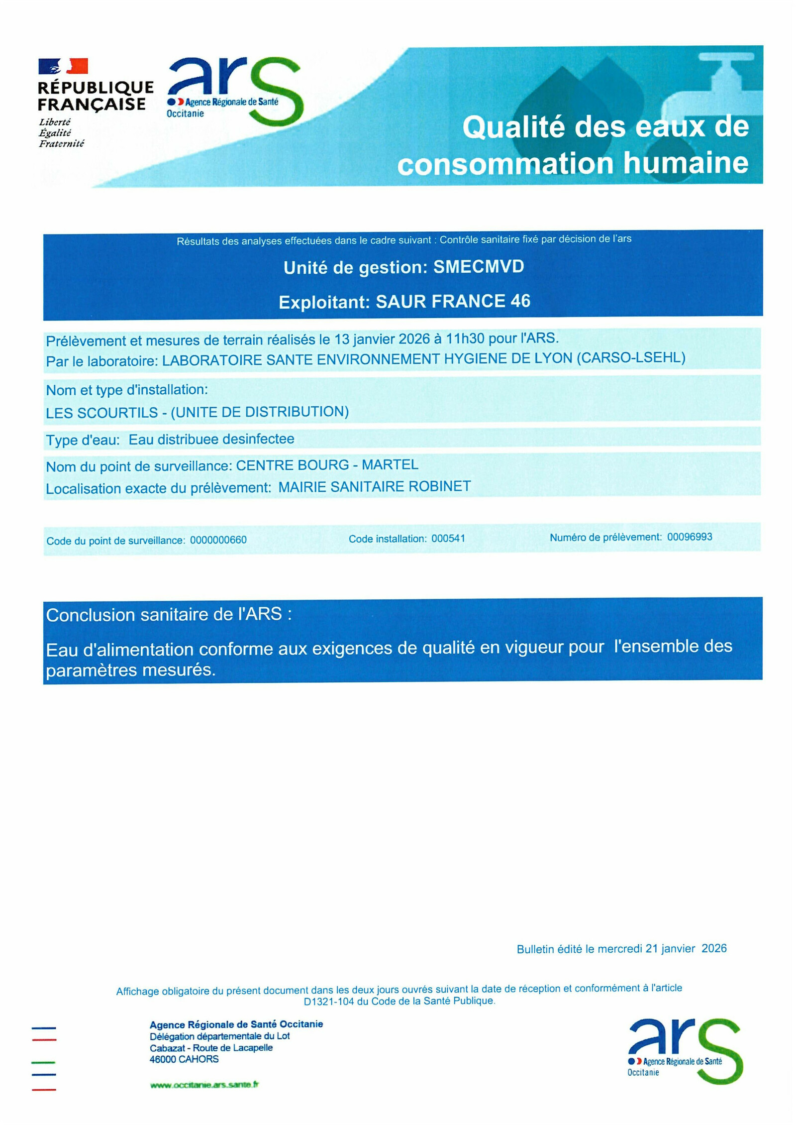 Qualité de l'eau potable